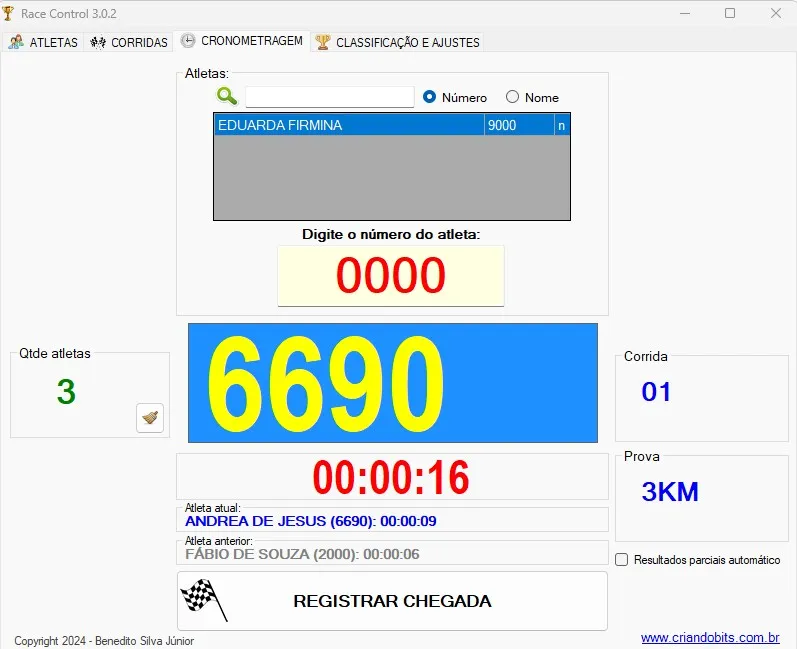 Gerencie atletas, cronometragem e resultados com poucos cliques. Feito para quem quer praticidade sem precisar de equipe técnica ou altos custos.